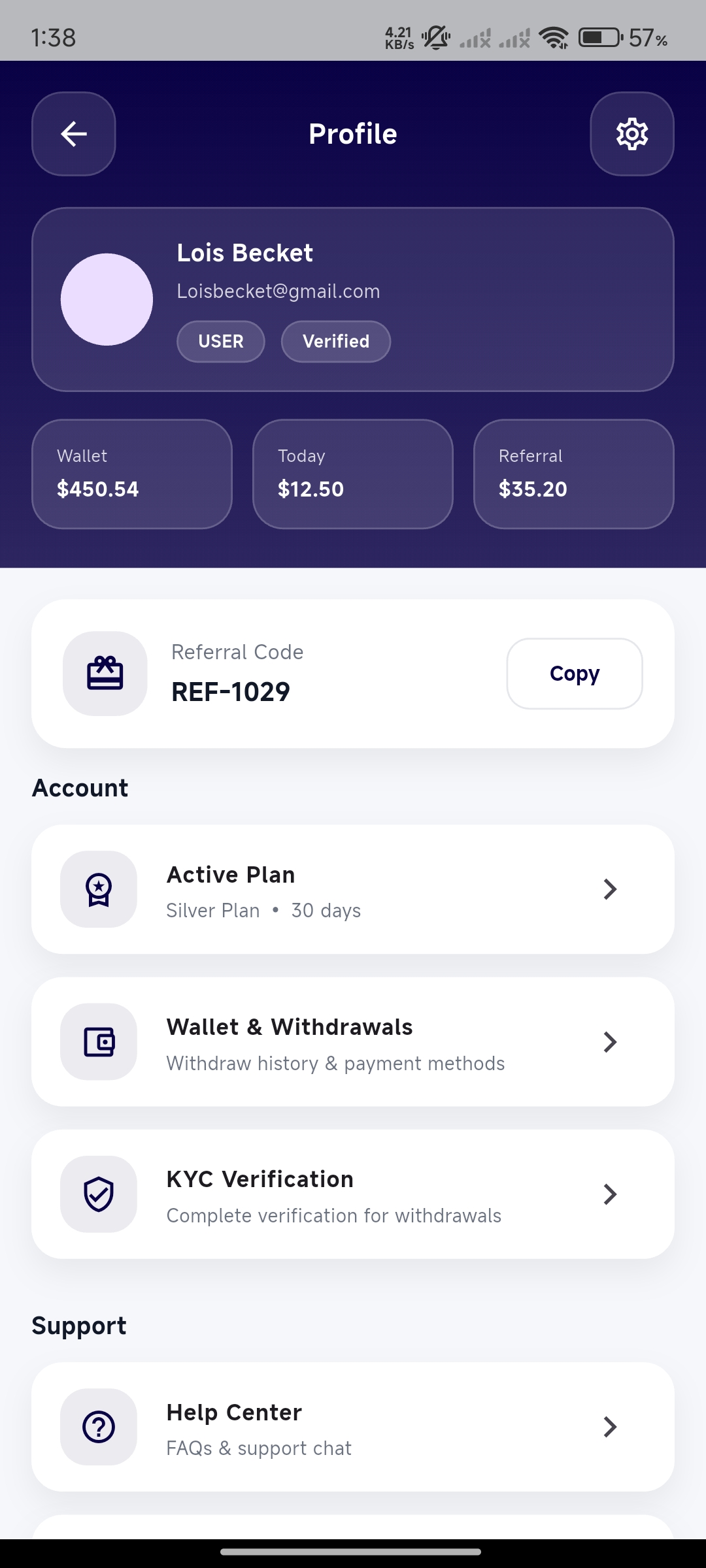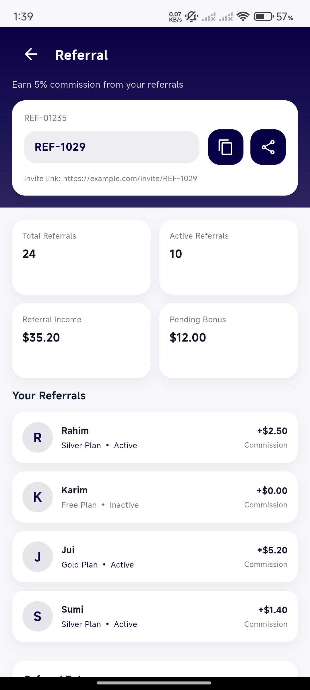Share referral code & earn more.